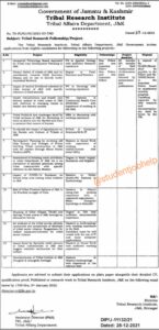 The Tribal Research Institute, Tribal Affairs Department. J&K Government invites applications from eligible candidates for fellowship in the following projects :
