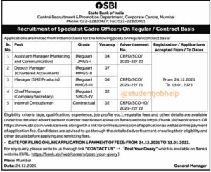 SBI Jobs Recruitment 2021.Apply For Various Post